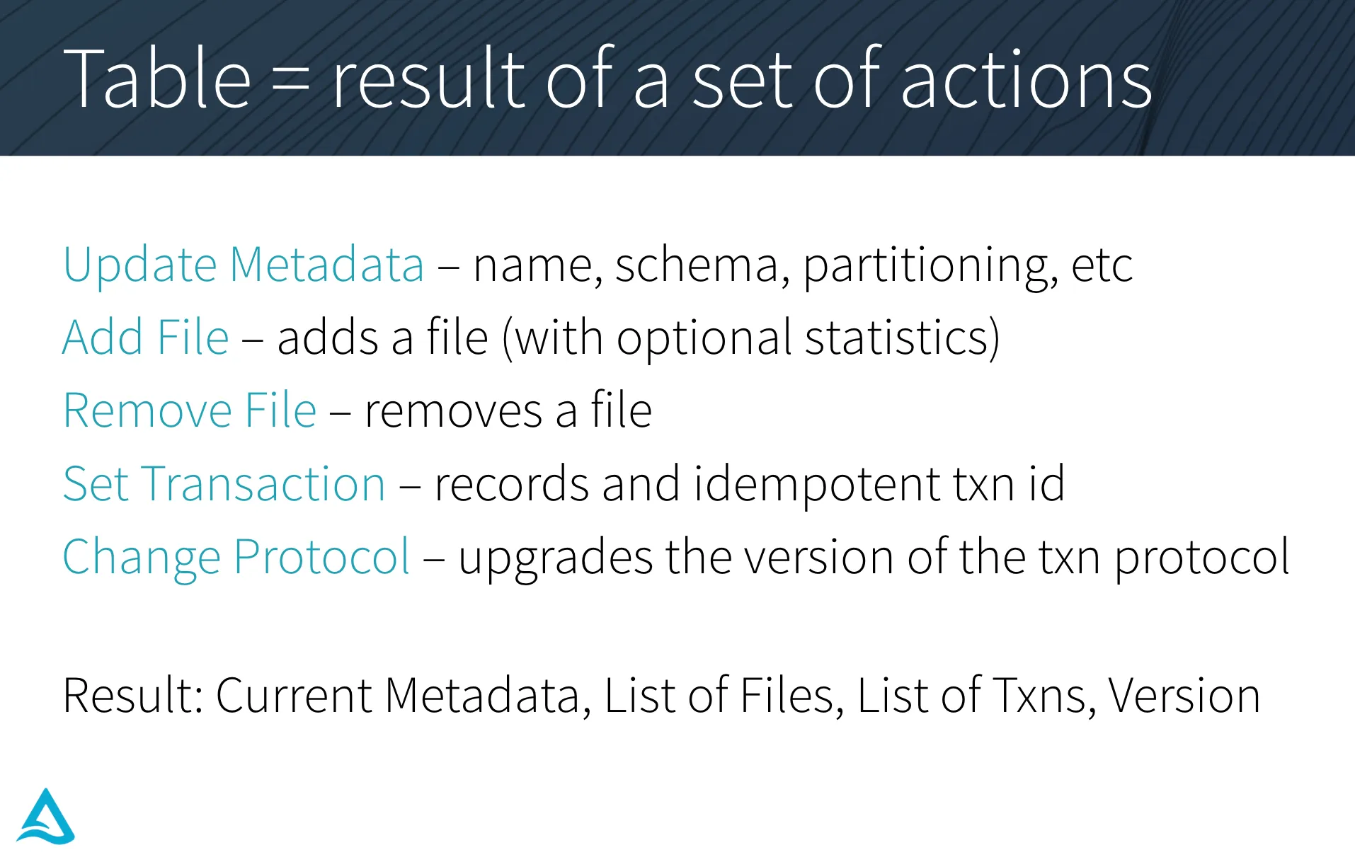In the earlier Delta Lake Internals webinar series sessions, we described how the Delta Lake transaction log works. In this session, we will dive deeper into how commits, snapshot isolation, and partition and files change when performing deletes, updates, merges, and structured streaming.